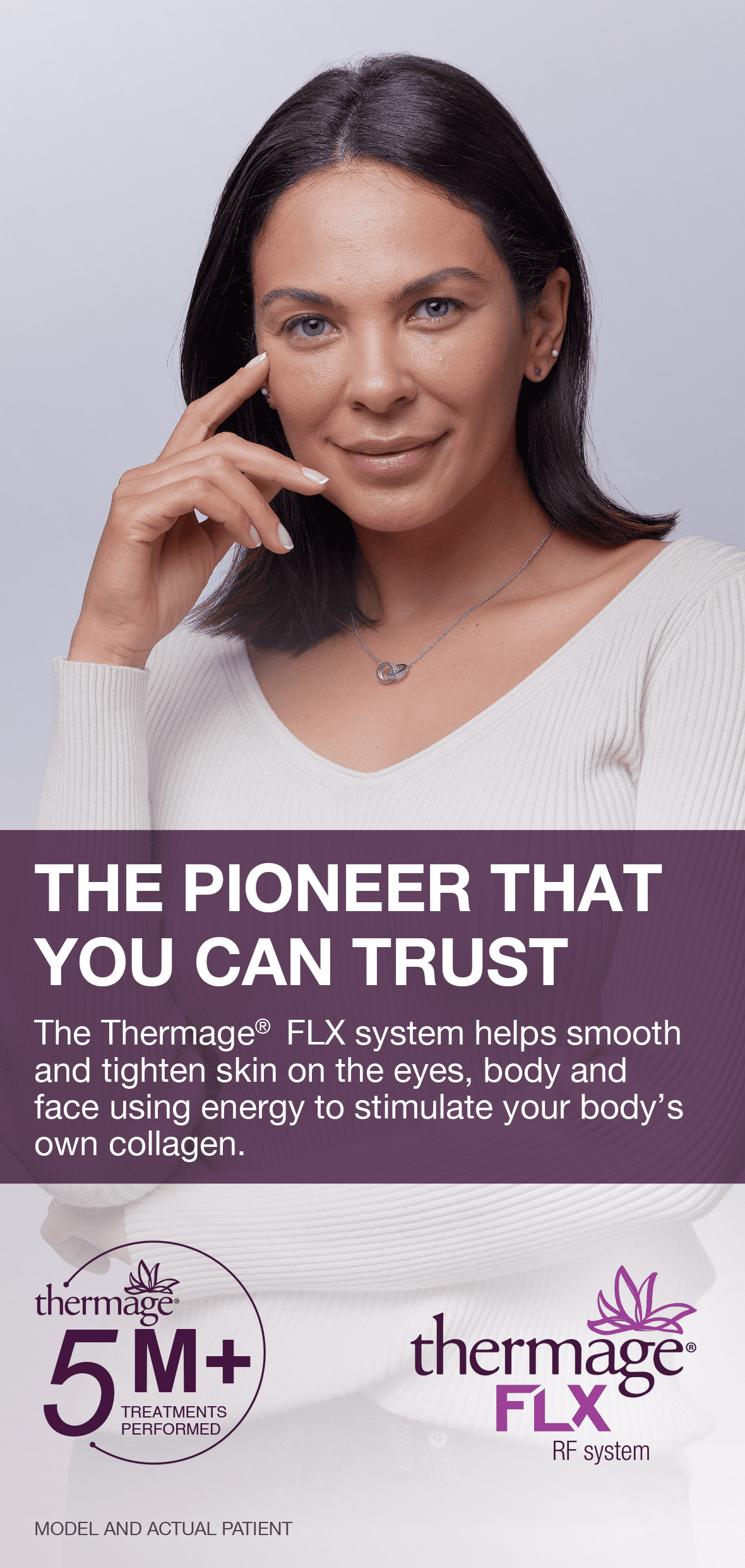 Thermage® pioneered the science of non-invasive radiofrequency energy for the treatment of lax skin. The technology works by providing volumetric heating to stimulate collagen regeneration and remodeling to smooth, tighten and contour skin - from head to toe.